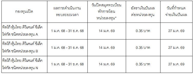 * ผู้ถือหน่วยลงทุนที่มีชื่ออยู่ในสมุดทะเบียนในวันที่ดังกล่าวจึงจะมีสิทธิได้รับเงินปันผล