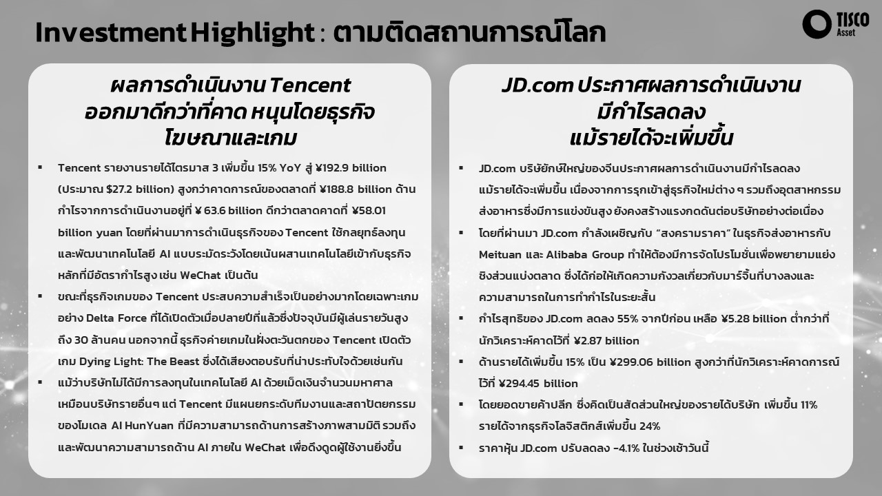 Daily Investment Highlight ประจำวันที่ 14 พ.ย. 68