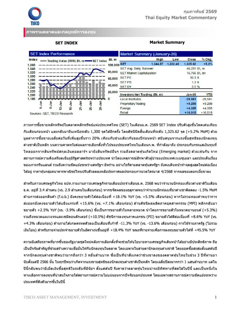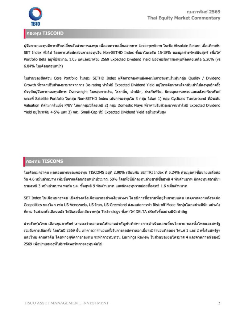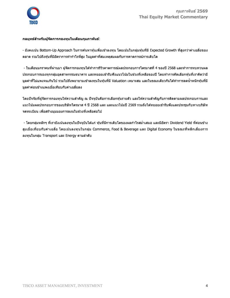 Thai Equity Market Commentary กุมภาพันธ์ 2569