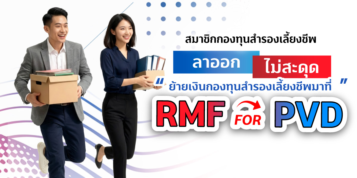 ทางเลือกสำหรับสมาชิกที่ลาออกจากงาน หรือสมาชิกคงเงิน สามารถโอนย้ายเงินกองทุนสำรองเลี้ยงชีพ (PVD) ไปลงทุนต่อเนื่องในกองทุนรวมเพื่อการเลี้ยงชีพ (RMF) ได้เลย ภายใน 30 วัน จากวันสิ้นสภาพการเป็นลูกจ้าง